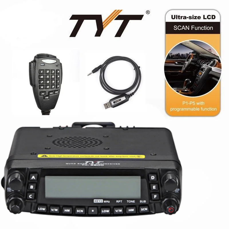BEST NEW TYT TH-9800 PLUS 50W Quad Band Dual Display Repeater Car Ham Radio+Programming Cable+Software